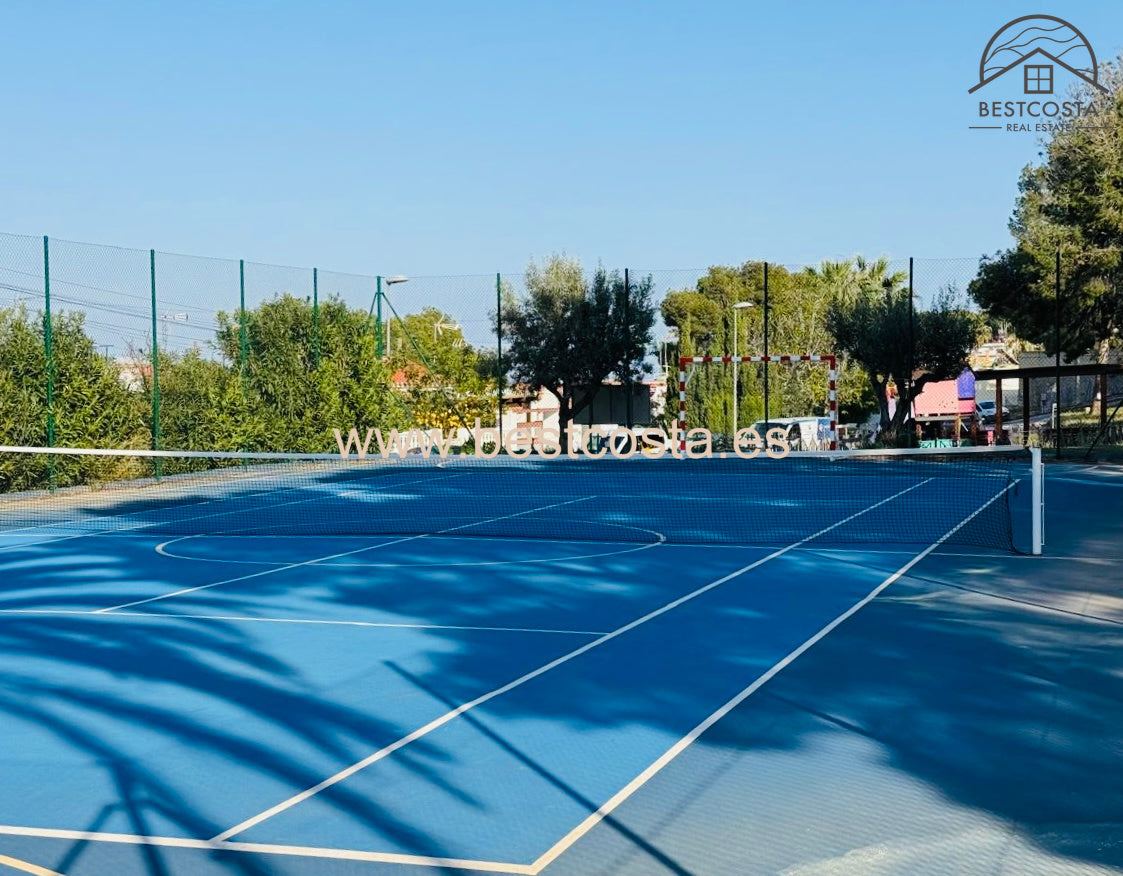 Completely refurbished, this chalet is located in a very quiet area, with access to a communal swimming pool, football and tennis courts, and a children’s playground. It is also very close to international schools and the sports center, just a few minutes from all amenities and only 6 km from Albir Beach.